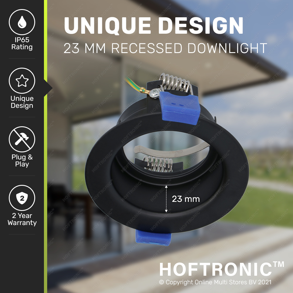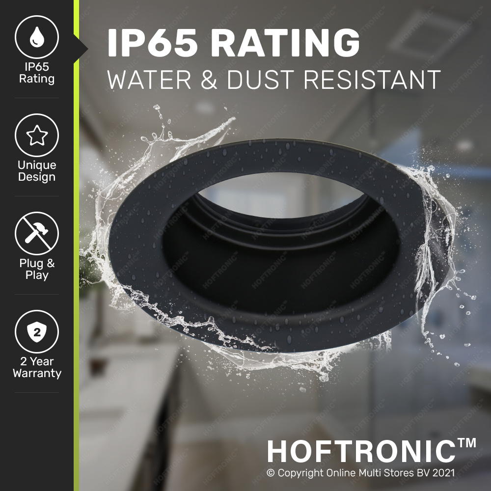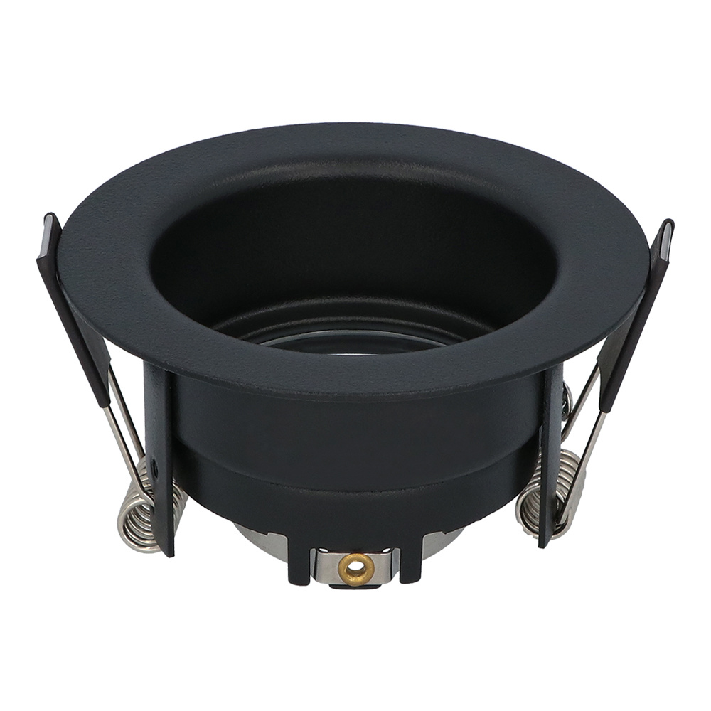 Deze GU10 armatuur is gefabriceerd van hoogwaardige klasse ijzer, de spot heeft een zwarte afwerking welke zorgt voor een strakke en actuele uitstraling. Het GU10 armatuur is voorzien van twee bevestigingsveren waardoor de spot aangenaam en binnenkort geplaatst kan worden in een plafond. Het armatuur is IP65 spatwaterdicht uitgevoerd, hiermee kun je de spot dus naar wens thuis of buiten toepassen.