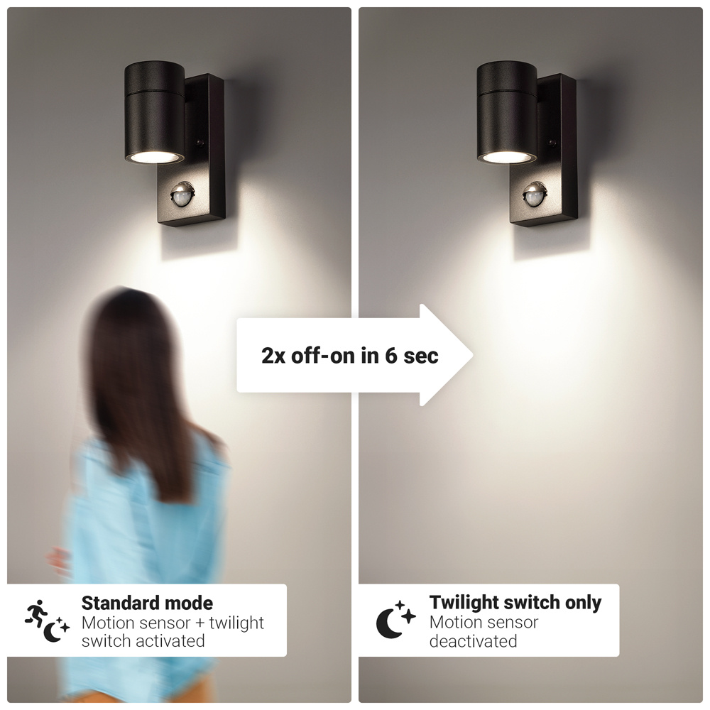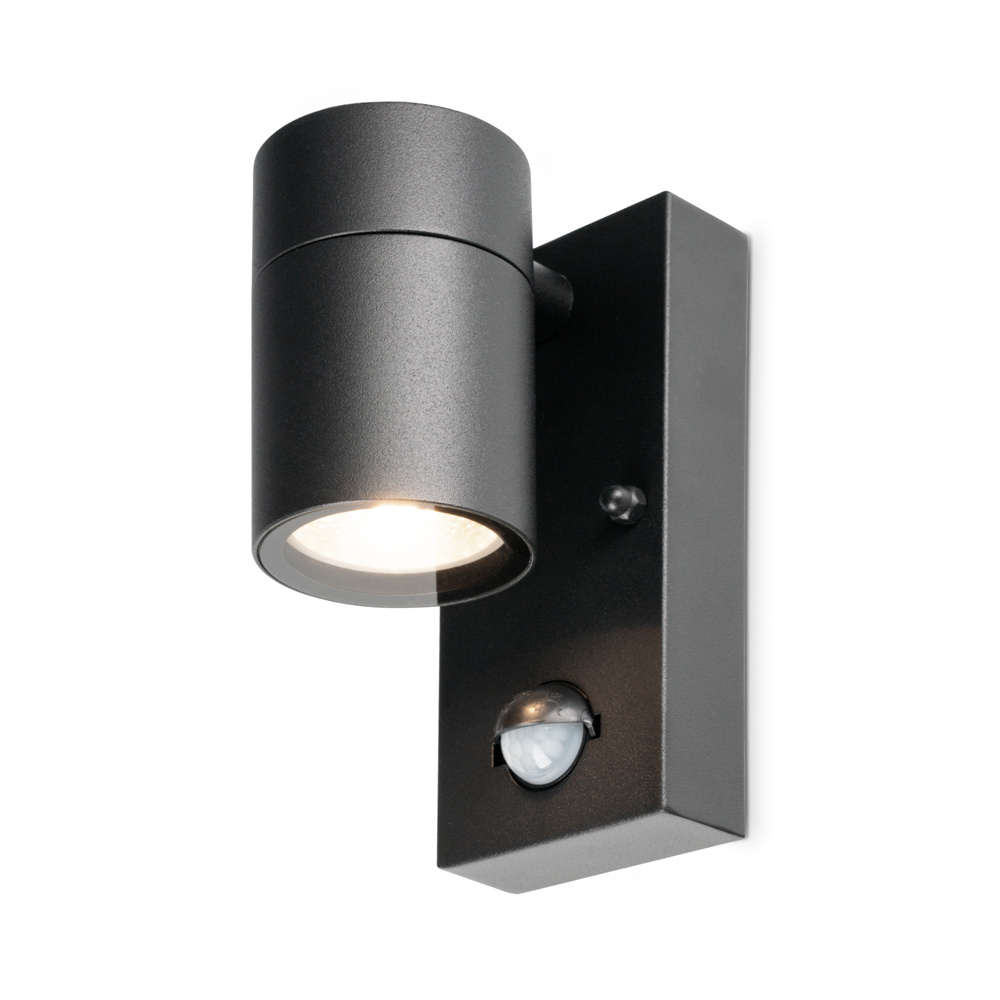 Duurzame LED Wandlamp Mason Zwart – Een modieuze en dimbare wandspot met bewegingssensor en schemerschakelaar inbegrepen 4000K GU10 spot