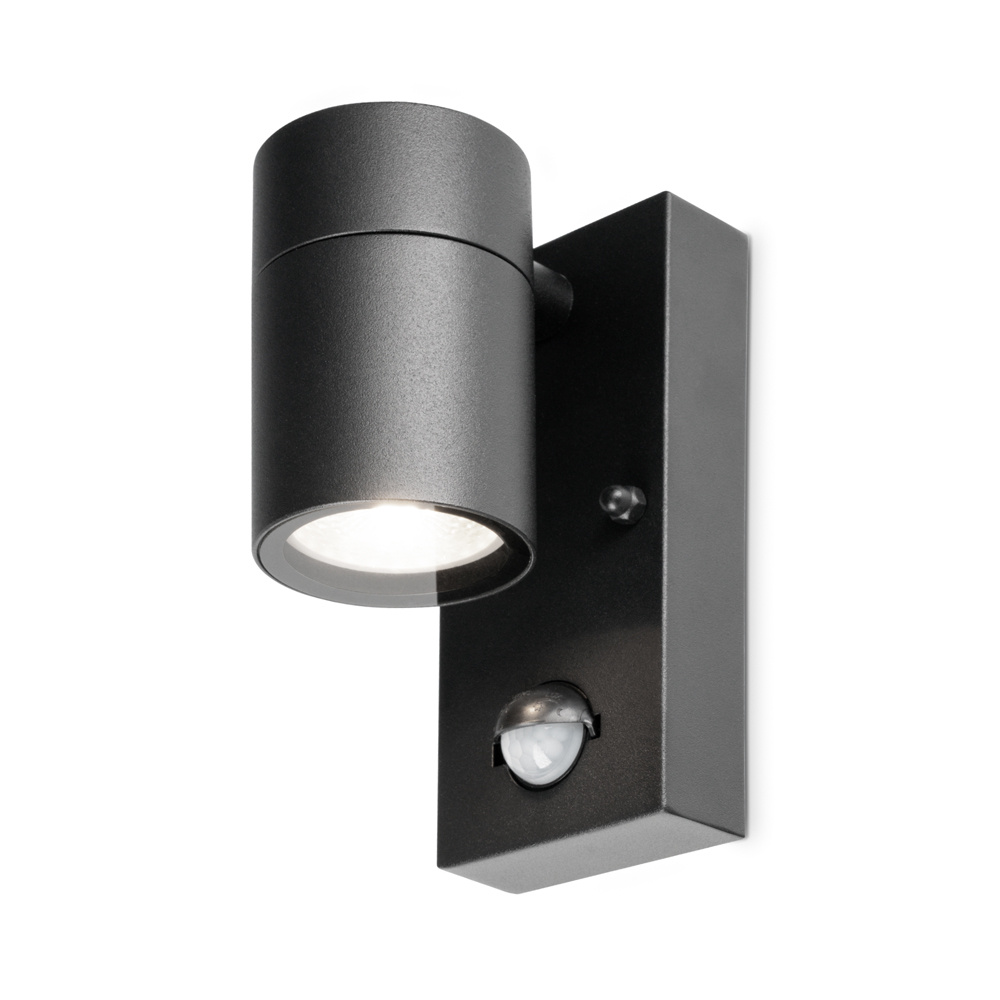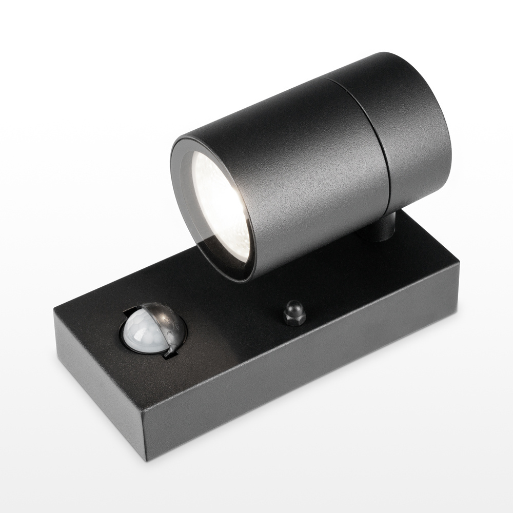Duurzame LED Wandlamp Mason Zwart – Een eigentijdse en dimbare wandspot met bewegingssensor en schemerschakelaar inclusief 6000K GU10 spot