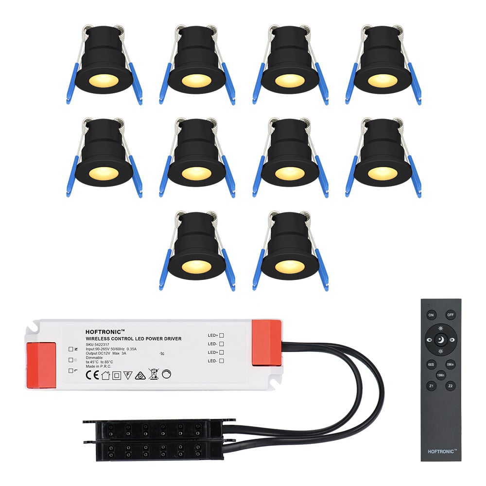 HOFTRONIC Milano – 10x inbouwspots veranda – Dimbaar LED – Complete set met afstandsbediening – Plug & Play – 12 Volt 3 watt – 2700K 200 lumen – IP65 waterdicht – Zwart