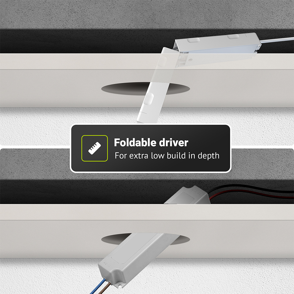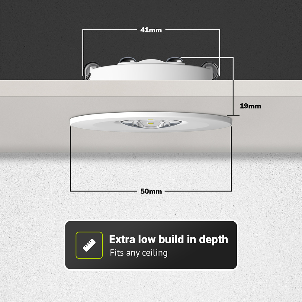 Je kunt de Miran noodverlichting heel genoeglijk monteren in het plafond of in de muur.