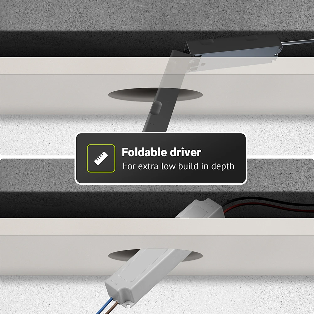 • Opvouwbare driver: De driver met batterij is opvouwbaar opdat hij ook in kleinere ruimtes hoort bij. Dit maakt de inbouwspot veelzijdiger en gemakkelijker te installeren dan andere noodverlichting inbouwspots.