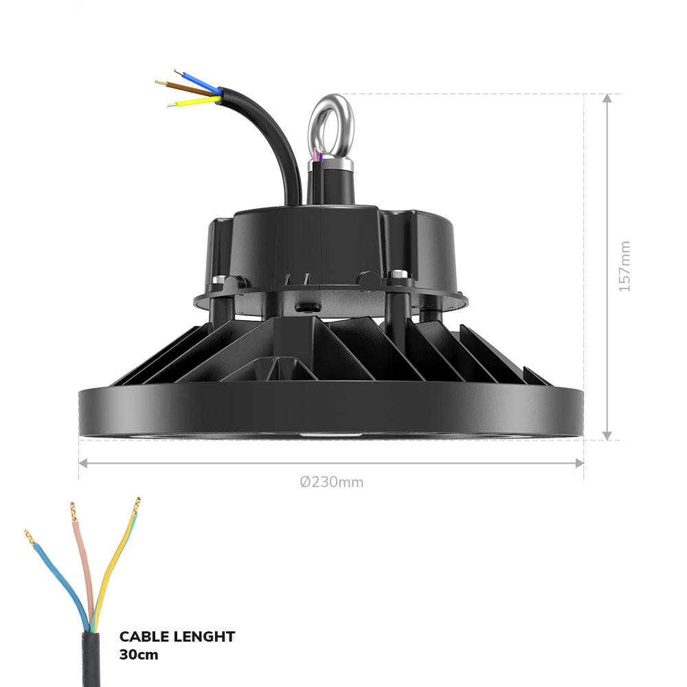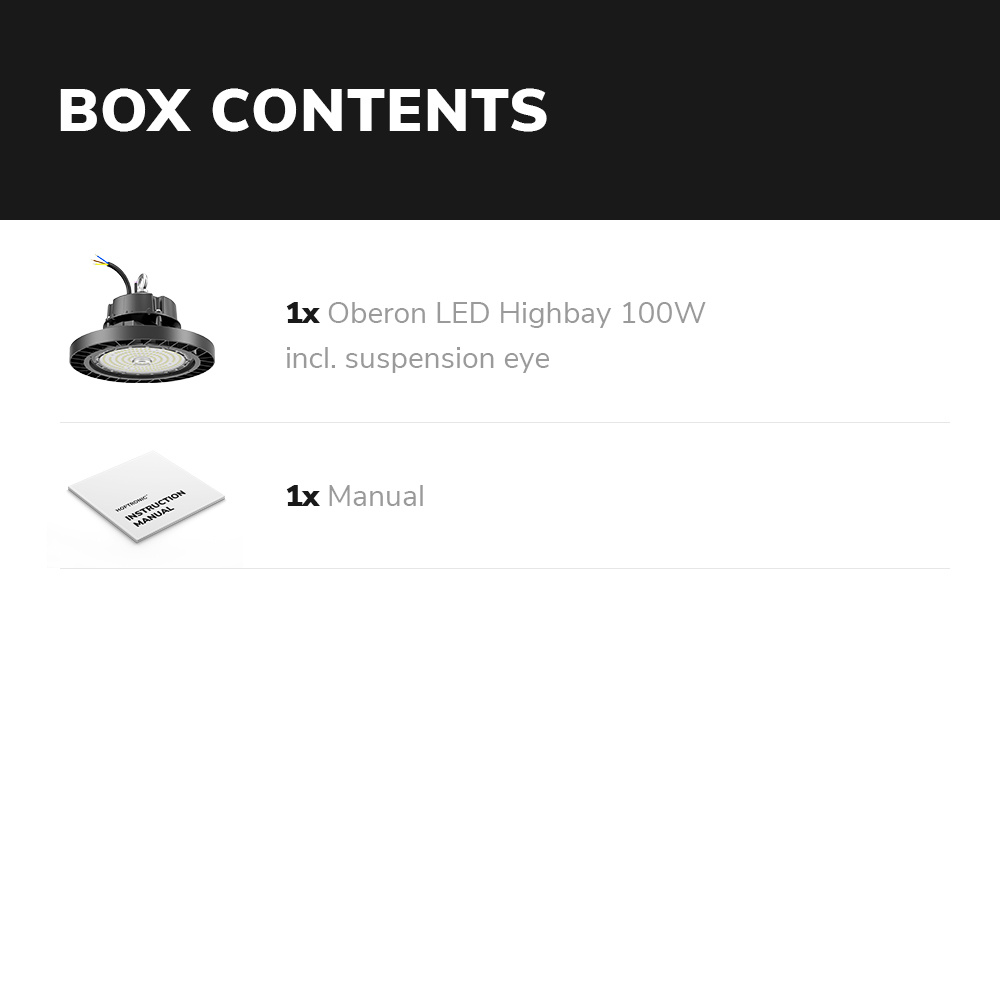 De Oberon High Bay is een multifunctionele lamp die prima is voor utiliseer in magazijnen, loodsen en andere werkplaatsen. De Oberon heeft een lichtopbrengst van 19.000 lumen en verbruikt 100 Watt. Met de deze high bay verlicht je enorme oppervlakken zonder problemen.
