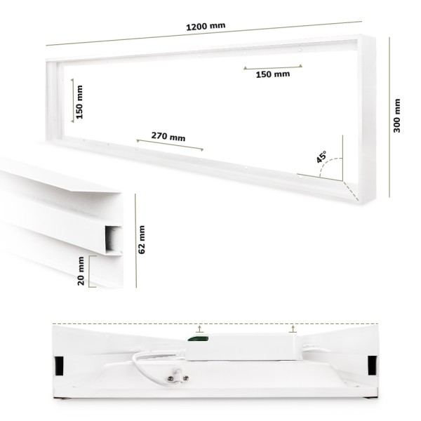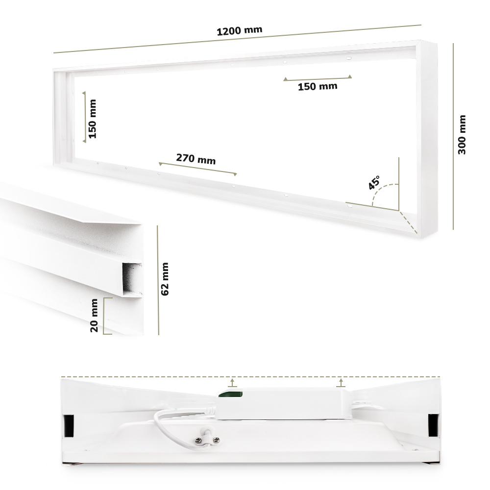 Dit kwalitatieve LED paneel opbouwframe waakt ervoor dat je een LED paneel simpelweg en strak kunt wegwerken wanneer je het paneel niet wilt of kunt inbouwen in een systeemplafond. Combineer dit frame met het LED paneel van 30 x 120cm.