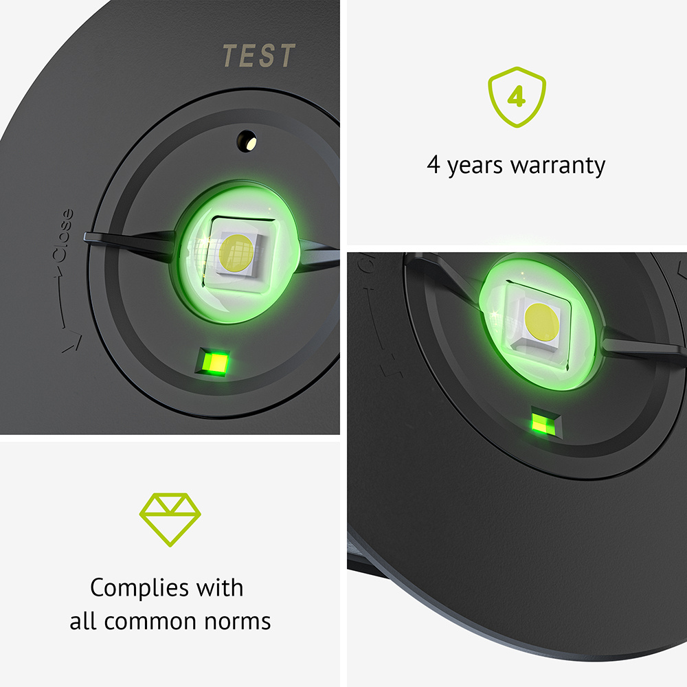 De Parvos inbouwspot heeft een handige autotestfunctie. Dankzij de autotestfunctie voert de lamp elke maand en eenieder jaar automatisch een zelftest uit. Als de lamp niet optimaal functioneert, zal een rode led-indicator gaan branden of knipperen. Dit verhoogt niet alleen de veiligheid, maar bespaart mede tijdruimte aangezien je de lamp niet meer elke maand handmatig hoeft te proberen. De Parvos inbouwspot heeft daarnaast een aparte testknop waarmee je handmatig kunt controleren of de noodverlichting automatisch inschakelt bij stroomuitval.
