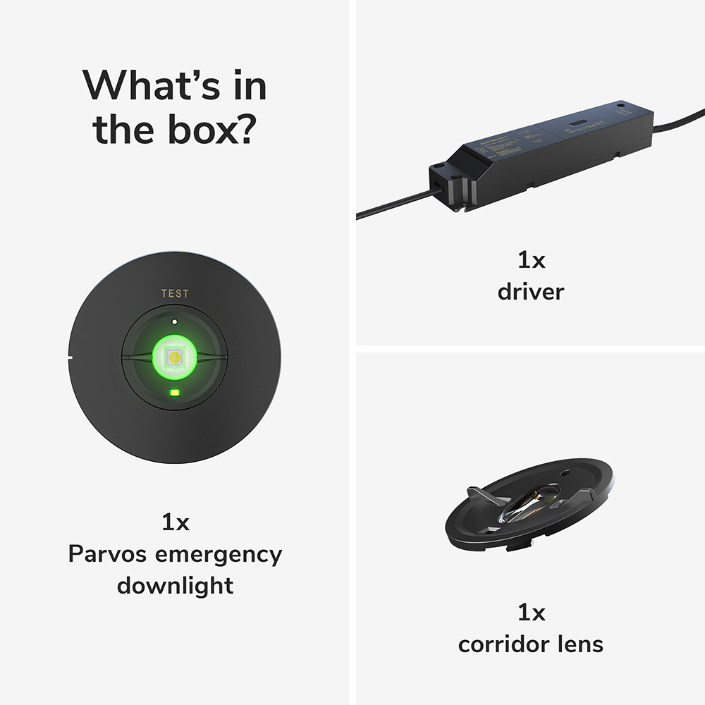 De Parvos is een professionele inbouwspot in de kleur zwart die dient als anti-paniekverlichting wanneer de stroom uitvalt bij een calamiteit. Deze inbouwspots, die je zowel in het plafond als in de muur kunt monteren, plaats je in ruimtes die aan een vluchtroute liggen, zodat tevens de weg naar de vluchtroute maximaal te vinden is. Deze LED-noodverlichting-inbouwspots zijn dan mede betrouwbaar voor o.a. winkels, bedrijven, magazijnen en werkplaatsen. De LED-lichtbron heeft een hoge lichtopbrengst van 330 lumen en een daglicht witte lichtkleur van 6500K. Hierdoor is de noodverlichting juist blijkbaar. Ondanks dat heeft de inbouwspot een verbruik van slechts 1,6 watt.