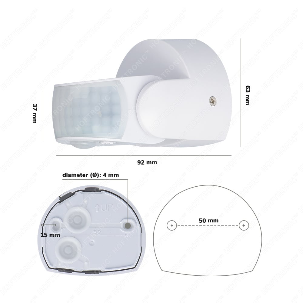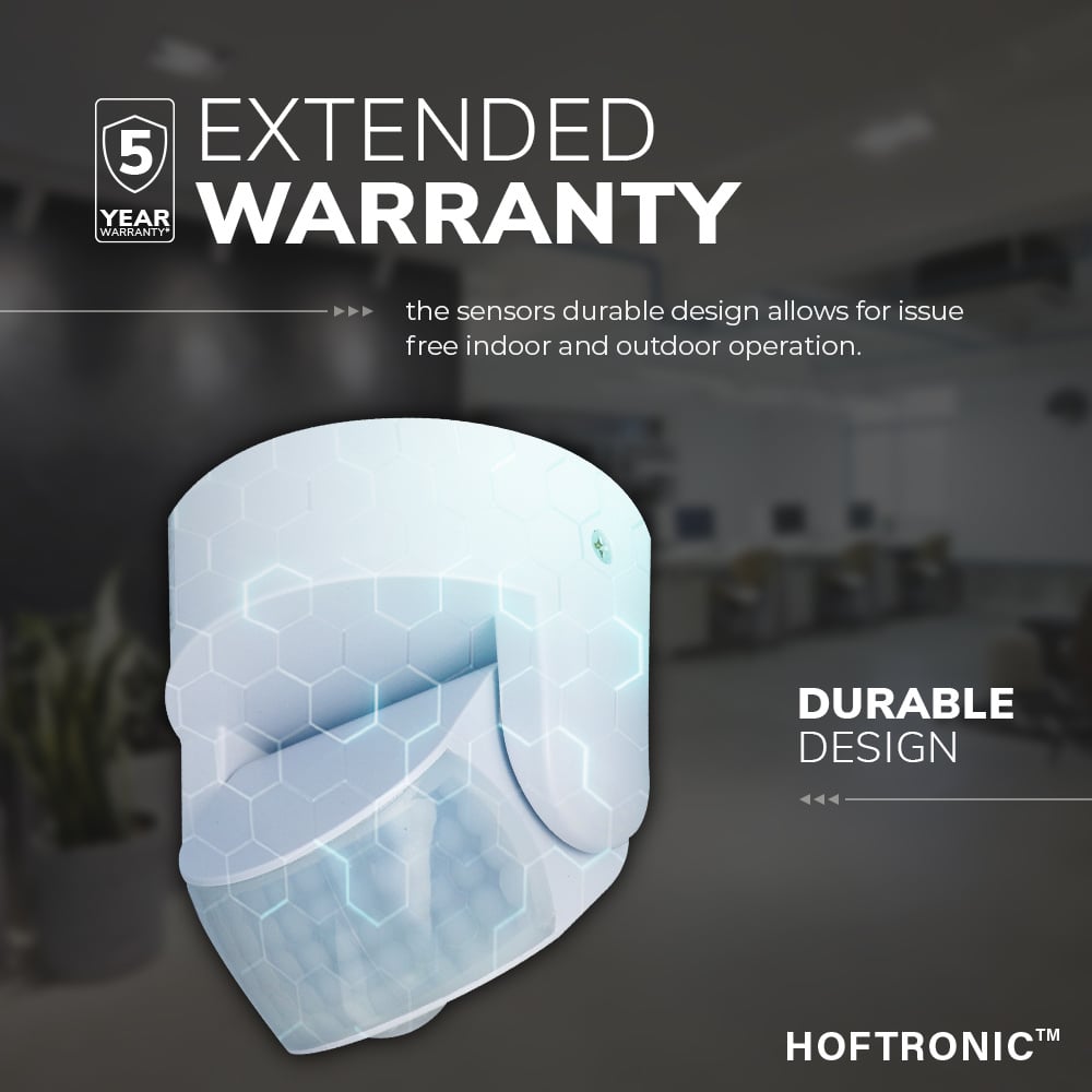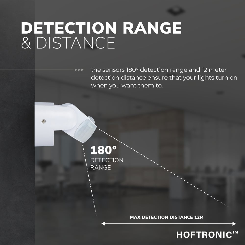 De detectiehoek van 180 graden zorgt ervoor dat de bewegingsmelder alle bewegingen detecteert die voor de sensor en aan de zijkant van de sensor plaatsvinden. In combinatie met het detectiebereik van 12 meter is de sensor zelfs bekwaam voor hele hoge plafonds of enorme buitenruimtes. Denk hierbij aan een hangar, loods of een parkeerterrein. Uiteraard is de sensor mede zeer bruikbaar voor de tuin.