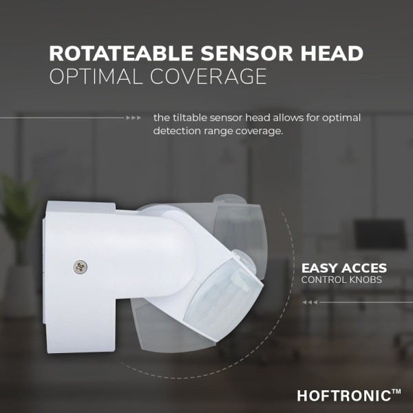 De sensor op deze bewegingsmelder is 180 graden kantelbaar. Dit waakt ervoor dat je de bewegingsmelder zowel op het plafond als aan de wand kunt installeren. De sensor is eenvoudig in stand aan te passen door de kruiskop schroefjes aan de zijkant van de sensor. Hierdoor blijft de sensor na het aanpassen van de stand extreem op zijn plek.