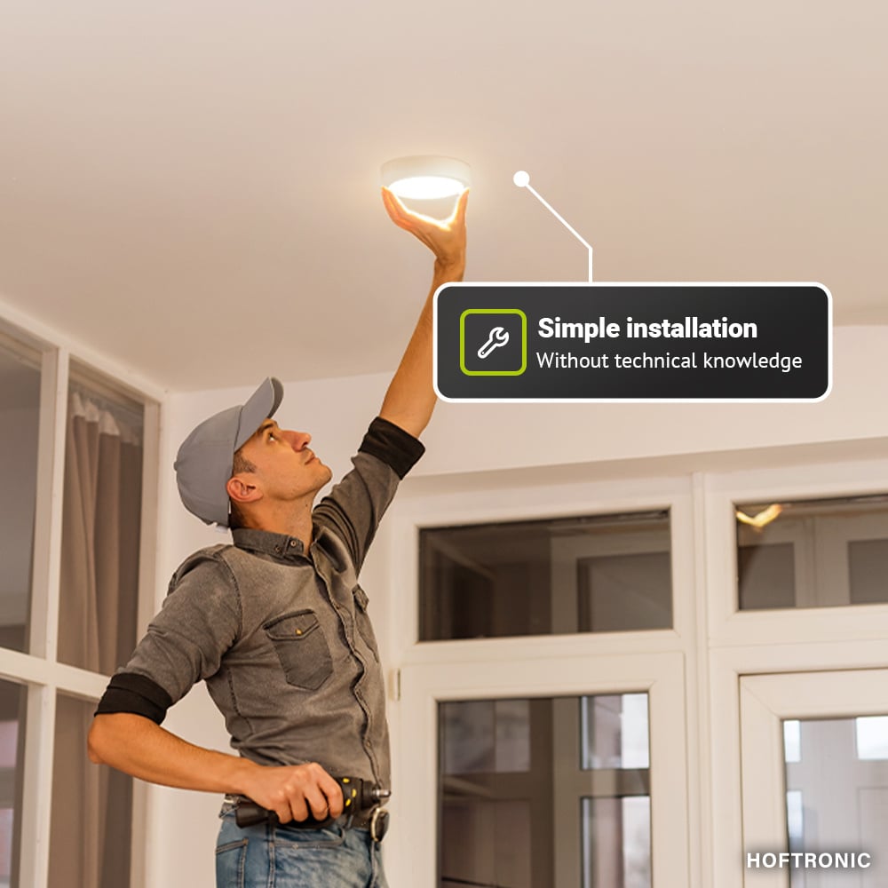 Timmy is een compacte plafondlamp voor droge vertrekken. De plafonniere is gefabriceerd van brandwerend kunststof en weegt hierdoor minder dan 200 gram. Hierdoor kun je de plafondlamp ook op dunne wanden en plafonds monteren. Timmy heeft een geïntegreerde lichtbron in de lichtkleur 4000K neutraal wit. Hij is eenvoudig te combineren met een schemerschakelaar of bewegingssensor.