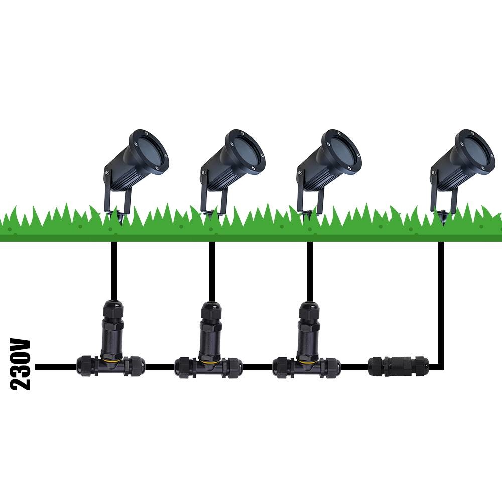 De prikspot is moeiteloos te monteren, steek de grondpin op de gewenste plek in de aarde en en sluit de spot hierop aan. De prikspot is reeds voorzien van een kabel met een grootte van ongeveer 30 cm. In het pakket ontvang je een mede een inbussleutel om de spot te installeren. Wij aanbevelen je onze IP68 kabelconnector rechtstreeks mee te bestellen om een mooie waterdichte aansluiting te kunnen realiseren met jouw stroomkabel. Het maken van een waterdichte verbinding van jouw kabels wordt hiermee een fluitje van een cent.