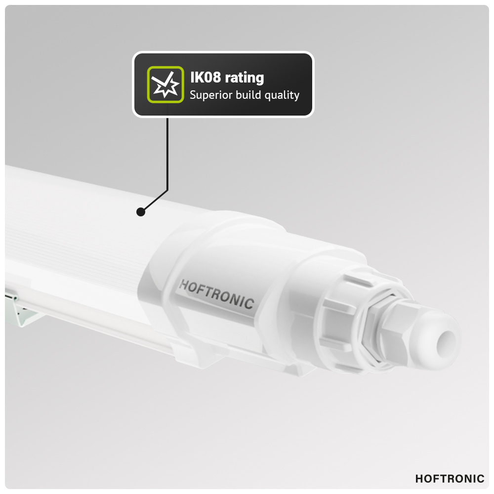 Dit armatuur is voorzien van een IK08-waarde. Dit maakt het armatuur zeer bruikbaar voor magazijnen, loodsen en andere werkruimtes. De armatuur kan optimaal tegen een stootje. De 08 waarde houdt in dat de armatuur bestand is tegen val- en stoot impact van 5 joule. Dit is te vergelijken met het laten vallen van een object van circa 2 kilo.