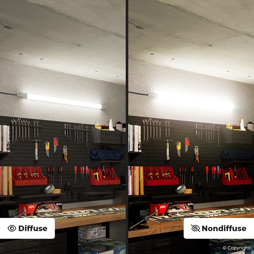 Dit waterdichte LED TL armatuur is gemaakt van ondoorzichtig kunststof waardoor het armatuur een diffuus licht schijnt. Dit heeft als groot voordeel dat je niet verblind wordt door fel licht wanneer je onmiddelijk in de lamp kijkt. Daarnaast verdeelt de lamp hierdoor zijn licht leuker en is de volle grootte van de LED-balk verlicht.