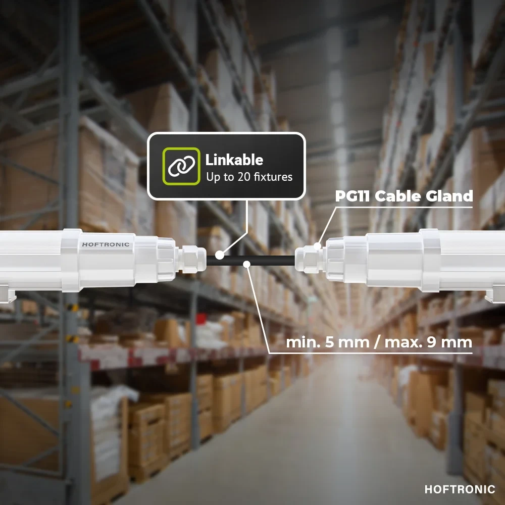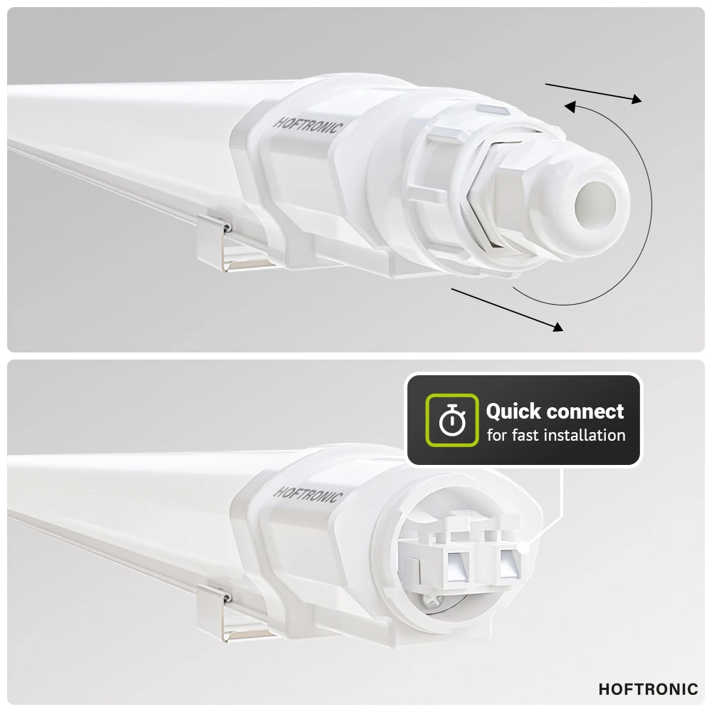 HOFTRONIC Q-Series – Set van 8 LED TL armaturen 60cm – IP65 Waterdicht – 18 Watt 2160 Lumen vervangt 72 Watt – 120lm/W – 4000K neutraal wit licht – gereedschaploos Koppelbaar – IK08 – Tri-proof