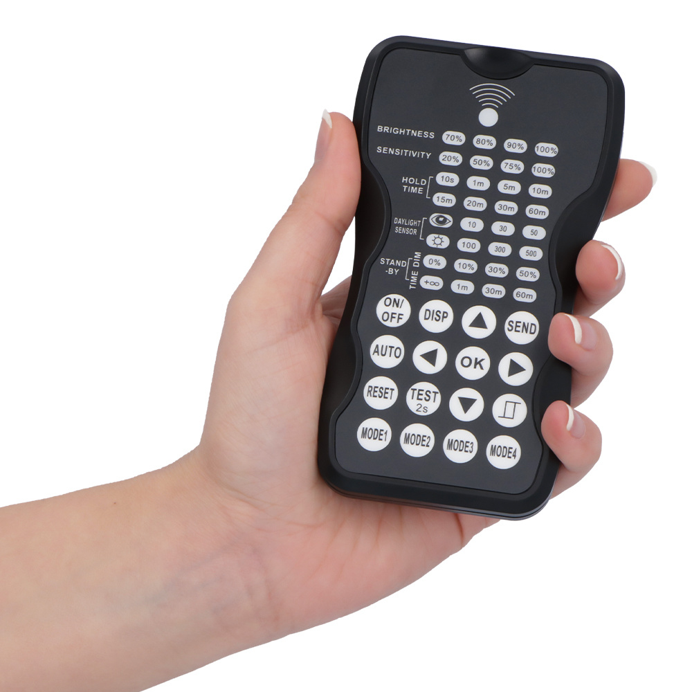 Door de handige TEST knop op de remote is het soms om gevoeligheid van de bewegingssensor ogenblikkelijk te uittesten.