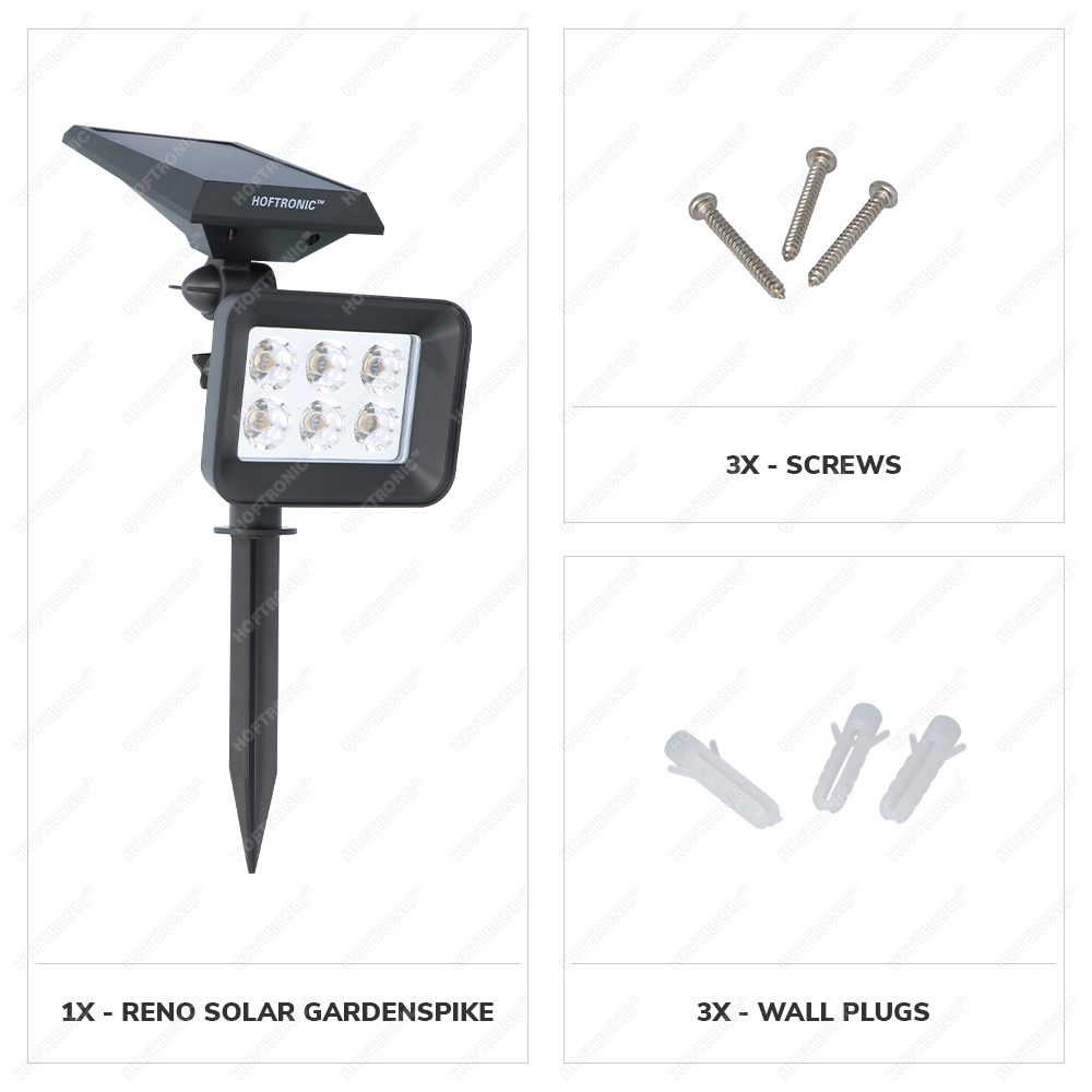 HOFTRONIC Reno LED Solar Tuinspot 3000K warm wit IP65 Spatwaterdicht Prikspot Grondspot