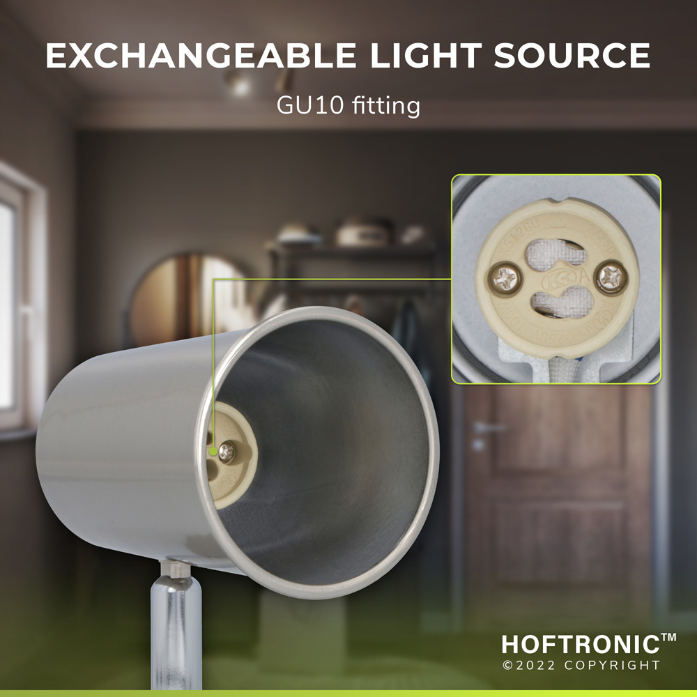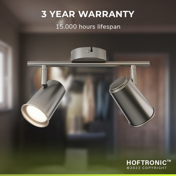 De fitting in de 2 spotjes is een GU10 fitting. Dit betekent dat jij naar wens een lichtbron kan vertrekken en wanneer deze defect is vervang je hem eenvoudig zelf voor een fonkelnieuwe spot. Wil jij je kamer graag met zomers wit licht verlichten of met koel wit licht? Het is allemaal geen probleem. Wij bieden zelfs smart GU10 spots met RGBWW licht aan, zodat jij van Riga een slimme plafondlamp kunt maken. Stel je licht in op een van de zestien.vijf miljoen kleuren uit onze Hoftronic Smart app, stel tijdschema’s in en nog voldoende meer.