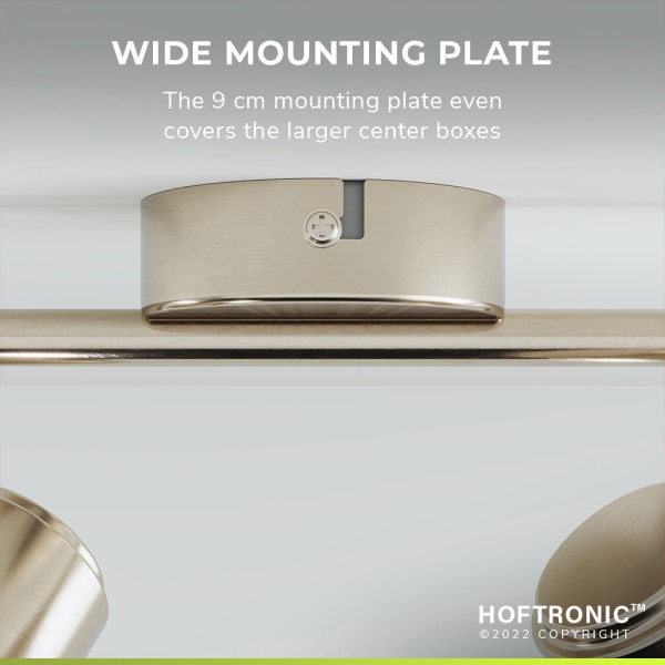 Door de 2 aanwezige spots kun jij zowel een grote als korte ruimte van licht voorzien en kun je alle spots verscheidene richtingen uit kan laten schijnen. De Riga is 27,vier cm lang en 17,6 cm divers. De afzonderlijke twee spots zijn ieder 100 mm lang met een doorsnede van 68 millimeter. De spots zijn uitmuntend over de totale lengte gepositioneerd voor een rustige maar elegante uitstraling. De grondslag waar de volle lamp aan hangt en geplaatst wordt is negen centimeter dik en zorgt niet alleen dat deze vaststaand en gebalanceerd opgehangen kan worden, maar verbergt bovendien de inbouwdoos waardoor alles netjes en onzichtbaar weggewerkt is.