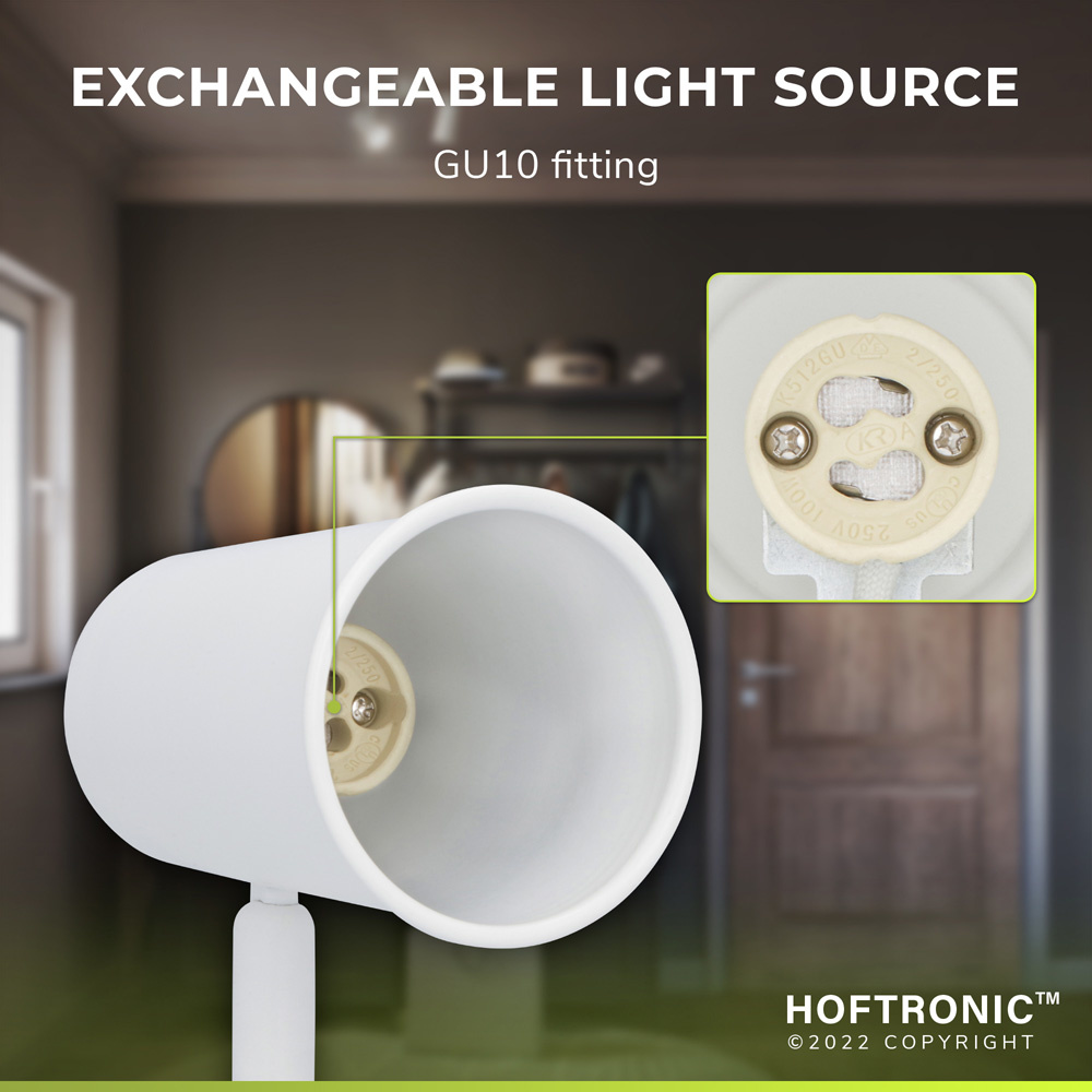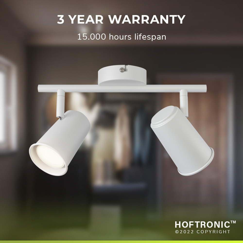 De fitting in de 2 spotjes is een GU10 fitting. Dit betekent dat jij naar wens een lichtbron kan ruimtes en wanneer deze defect is vervang je hem handig zelf voor een gloednieuwe spot. Wil jij je kamer graag met warm wit licht verlichten of met koel wit licht? Het is allemaal geen obstakel. Wij bieden zelfs smart GU10 spots met RGBWW licht aan, zodat jij van Riga een slimme plafondlamp kunt maken. Stel je licht in op een van de 16.vijf miljoen kleuren uit onze Hoftronic Smart app, stel tijdschema’s in en nog vaak meer.