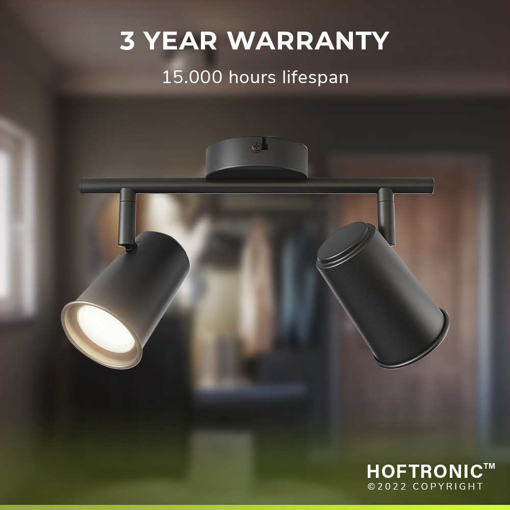 De fitting in de 2 spotjes is een GU10 fitting. Dit betekent dat jij naar wens een lichtbron kan plekken en wanneer deze defect is vervang je hem aangenaam zelf voor een gloednieuwe spot. Wil jij je kamer met alle plezier met heet wit licht verlichten of met koel wit licht? Het is allemaal geen probleem. Wij bieden zelfs smart GU10 spots met RGBWW licht aan, zodat jij van Riga een slimme plafondlamp kunt maken. Stel je licht in op een van de 16.vijf miljoen kleuren uit onze Hoftronic Smart app, stel tijdschema’s in en nog voldoende meer.