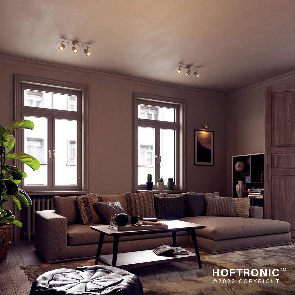 De fitting in de drie spotjes is een GU10 fitting. Dit betekent dat jij naar wens een lichtbron kan plaatsen en wanneer deze defect is vervang je hem handig zelf voor een kersverse spot. Wil jij je kamer met alle genot met warm wit licht verlichten of met koel wit licht? Het is allemaal geen probleemgeval. Wij bieden zelfs smart GU10 spots met RGBWW licht aan, zodat jij van Riga een slimme plafondlamp kunt maken. Stel je licht in op een van de 16.5 miljoen kleuren uit onze Hoftronic Smart app, stel tijdschema’s in en nog vaak meer.