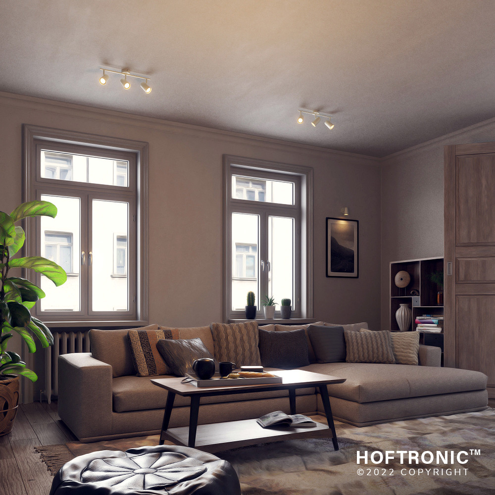 De fitting in de drie spotjes is een GU10 fitting. Dit betekent dat jij naar wens een lichtbron kan plekken en wanneer deze defect is vervang je hem probleemloos zelf voor een fonkelnieuwe spot. Wil jij je kamer graag met warm wit licht verlichten of met koel wit licht? Het is allemaal geen dilemma. Wij bieden zelfs smart GU10 spots met RGBWW licht aan, zodat jij van Riga een slimme plafondlamp kunt maken. Stel je licht in op een van de 16.vijf miljoen kleuren uit onze Hoftronic Smart app, stel tijdschema’s in en nog voldoende meer.
