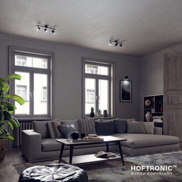 De fitting in de drie spotjes is een GU10 fitting. Dit betekent dat jij naar wens een lichtbron kan plaatsen en wanneer deze defect is vervang je hem simpelweg zelf voor een nieuwe spot. Wil jij je kamer graag met warm wit licht verlichten of met koel wit licht? Het is allemaal geen probleem. Wij bieden zelfs smart GU10 spots met RGBWW licht aan, zodat jij van Riga een slimme plafondlamp kunt maken. Stel je licht in op een van de zestien.vijf miljoen kleuren uit onze Hoftronic Smart app, stel tijdschema’s in en nog veel meer.