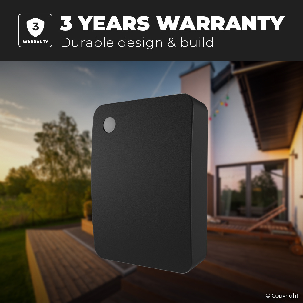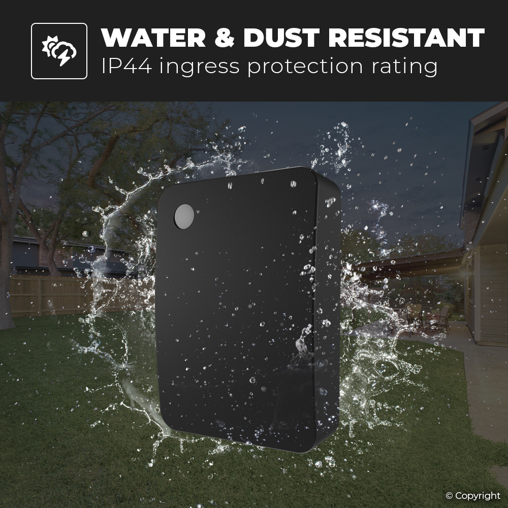 - IP44 waterdicht: Deze hoge IP-waarde zorgt ervoor dat je de sensor afgezien van problemen in vochtige vertrekken kunt toepassen. Deze gaat niet defect door vocht en/of stof.