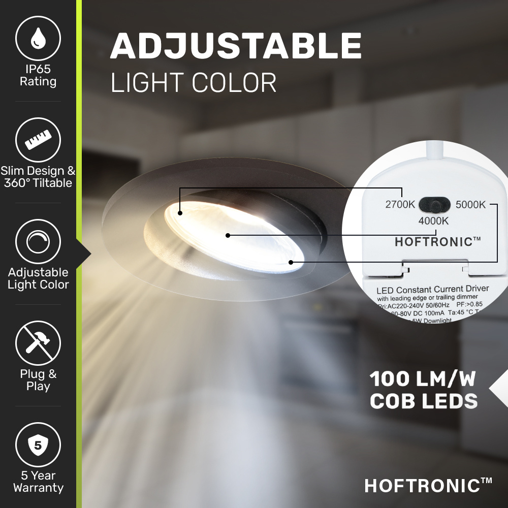 De Sierra maakt het daarnaast misschien om in je hele woonhuis dezelfde inbouwspot toe te behoren. Zeker in combinatie met de CCT mogelijkheid. Deze zorgt er namelijk voor dat je per spot de lichtkleur kunt aanpassen tussen warm wit en daglicht wit. Zo kies je voor de badkamer bijvoorbeeld een 4000K neutraal witte lichtkleur en voor de woonkamer een warm witte lichtkleur. De Sierra veel over de volgende lichtkleuren: