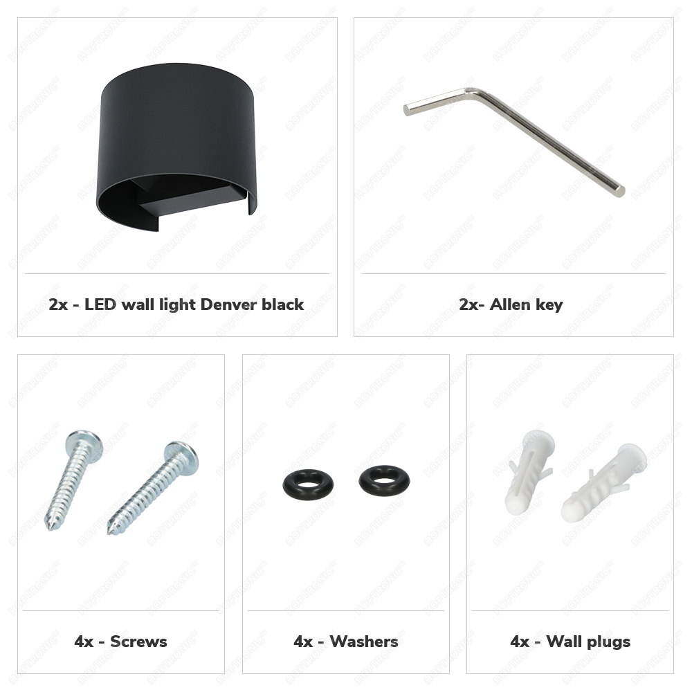 De Denver wordt compleet montageklaar gebracht. Dit betekent dat je bij het product alle benondigde montagematerialen ontvangt om de lamp op te hangen. In de verpakking vind je de volgende producten: