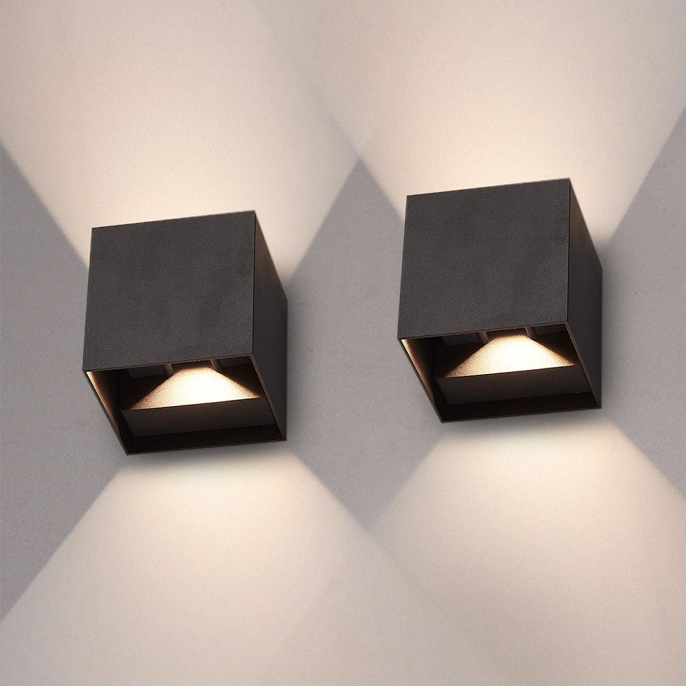 De lichtbundels van deze stijlvolle zwarte LED wandlamp zijn in een stralingshoek van 0-100° graden onafhankelijk van elkaar aan te passen. De trendy wandlamp is vervaardigd van onderhoudsvrij aluminium en afgewerkt met een vochtbestendige poedercoating. De vierkante kubus wandlamp schijnt een 3000K warm wit licht.