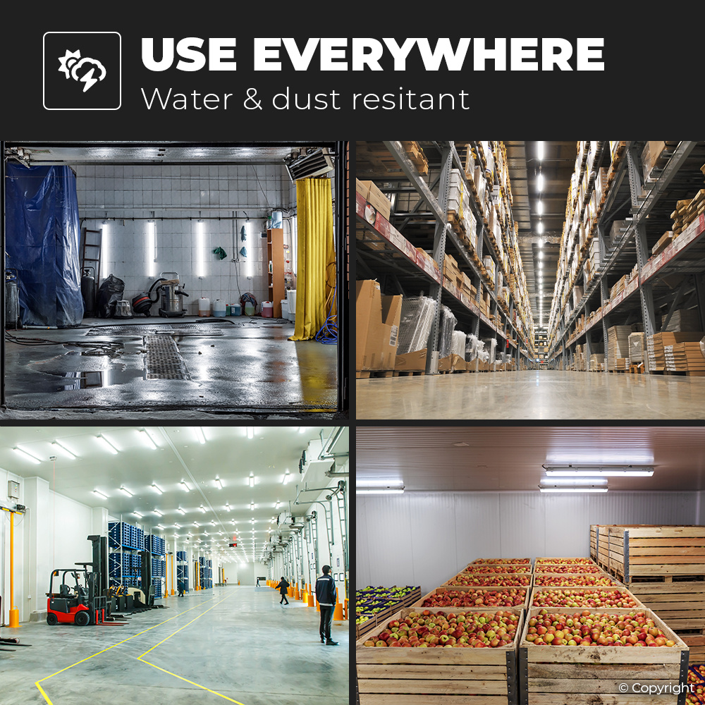 De lamp is moeiteloos waterdicht te koppelen door de aangebrachte aansluitwartels. Hierdoor koppel je in een handomdraai uiteenlopende lampen aan elkaar, waardoor je diverse lampen tegelijk met één schakelaar kunt bedienen. Door de waterdichte aansluitwartels kun je de lampen waterdicht aan elkaar koppelen door middel van een reguliere kabel. Je kunt tot volslagen 20 LED TL armaturen aan elkaar koppelen.