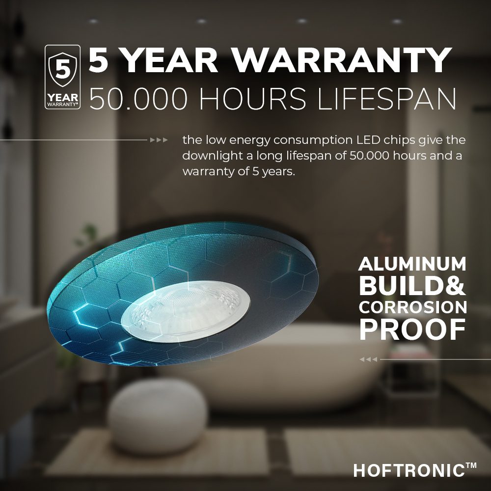 De kaliber van de LED downlights Pavo zwart is zeer kwalitatief. Dankzij de beschermingsgraad van IP44 is de LED downlights Pavo vochtbestendig en spatwaterdicht. Je kunt de LED Pavo downlights zwart dus gerust in een natte omgeving vertrekken. Dit kan onder andere in een keuken of badkamer zijn. Houd er wel rekening mee dat je de downlights niet in onmiddelijk contact met water laat komen. Lees hier in onze blog onze tips over badkamerverlichting en waar je het beste LED spots kunt plaatsen.