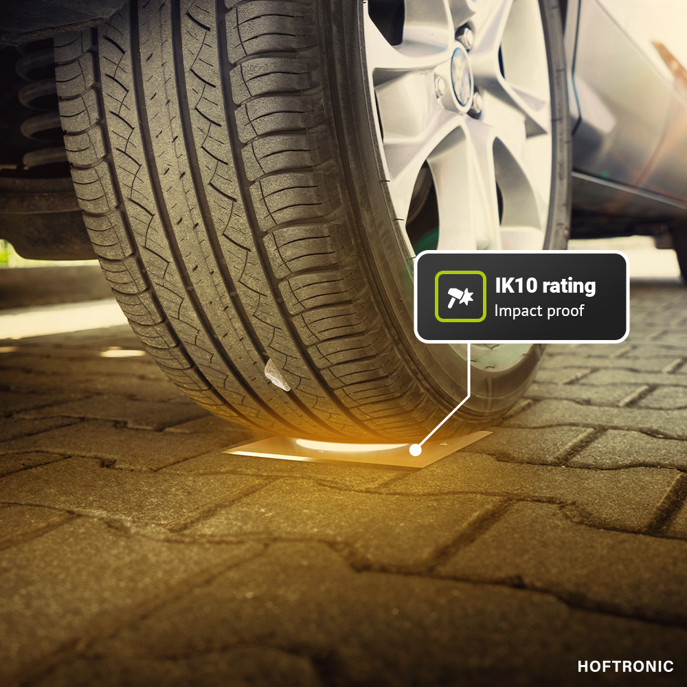 • Geschikt voor oprit: Door toepassing van stevige materialen en veiligheidsglas zijn de grondspots overrijdbaar. Je kunt deze dus bovendien inbouwen in je oprijlaan.