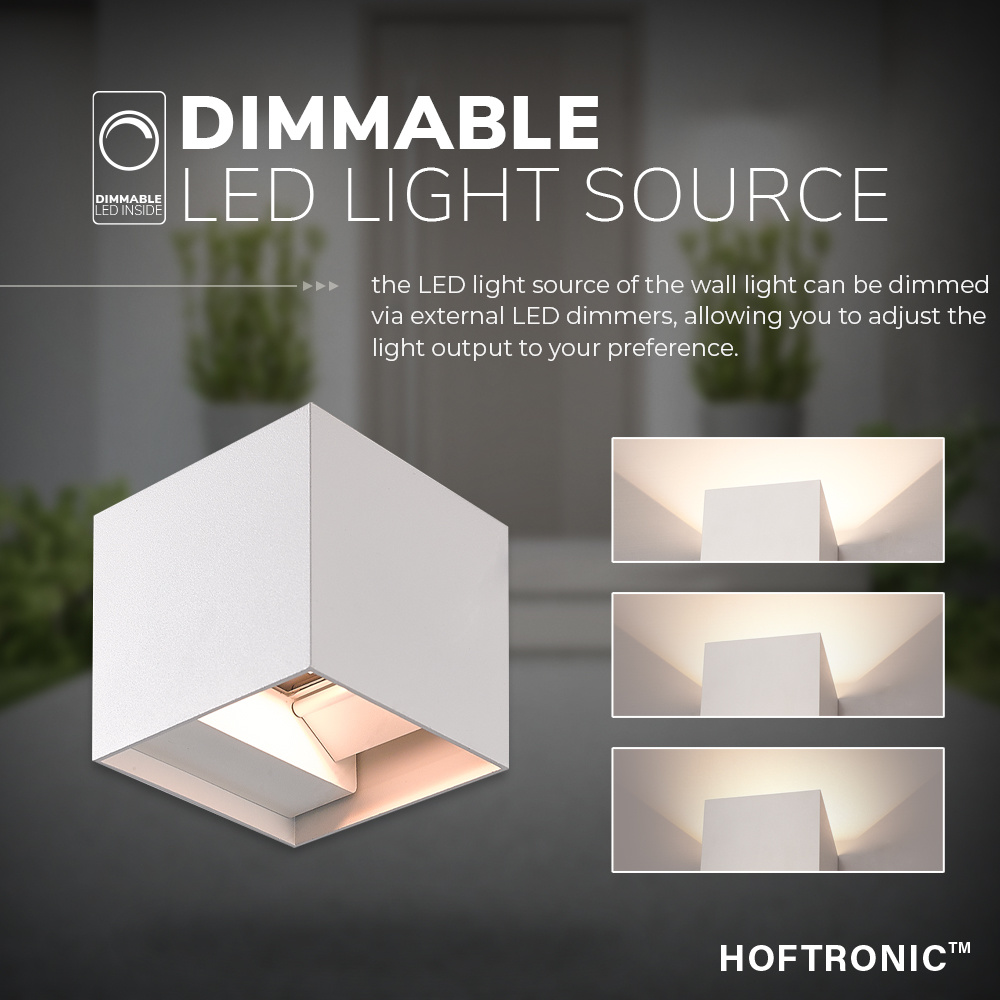 HOFTRONIC Set van 3 Dimbare LED Wandlamp Kansas wit 6 Watt 3000K Up & Down light IP54