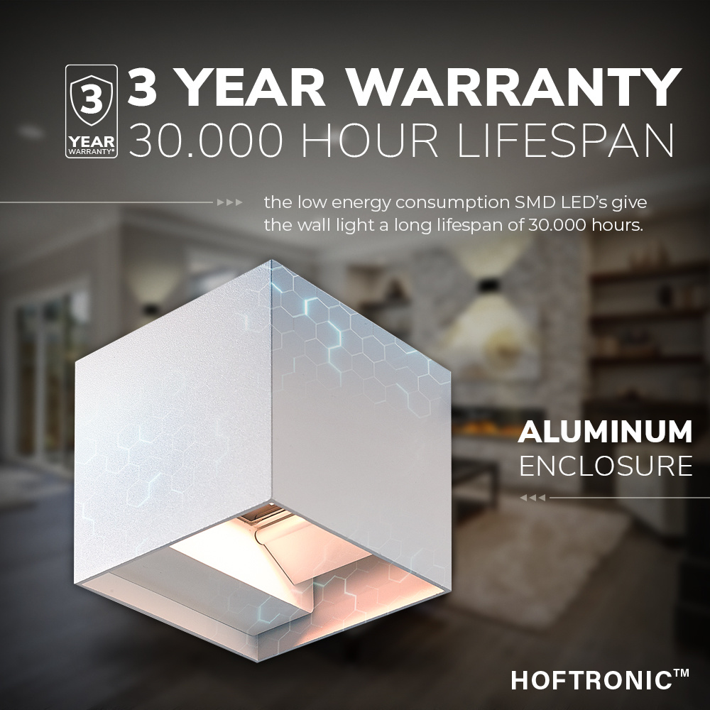De Kansas LED wandlamp is een modern van ontwerp met een kubus bouw laat de lamp zich dan ook in iedere omgeving moeiteloos plekken. De wandlamp is gemaakt van onderhoudsarm aluminium welke bestand is tegen de zwaarste weersinvloeden. Door de IP54 beschermingsklasse van de wandlamp kan deze bovendien buiten ingezet worden of in vochtige plaatsen zoals een badkamer. Hiermee is deze muurlampen een van de meest meerzijdige lampen in het assortiment welke zich perfect aanpast naar jouw wens. De Kansas wandlamp maakt het mede soms om beide stralingshoeken zowel naar beneden als naar boven naar wens aan te horen bij, dit kun je handmatig aanpassen op de lamp behalve enige spul.