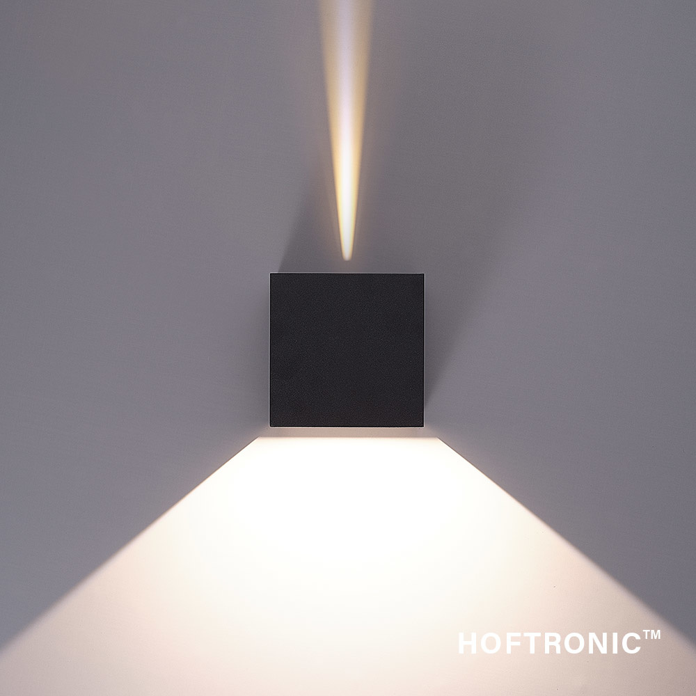 De lichtbundels van deze stijlvolle zwarte LED wandlamp zijn in een stralingshoek van 0-100° graden onafhankelijk van elkaar aan te passen. De moderne wandlamp is gecreëerd van onderhoudsvrij aluminium en afgewerkt met een vochtbestendige poedercoating. De vierkante kubus wandlamp schijnt een 3000K warm wit licht.