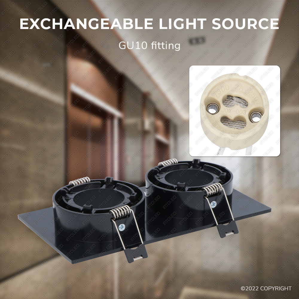 Set van 3 Mallorca dubbele LED inbouwspots met 2x 4000K GU10 lichtbronnen is kantelbaar en verbruikt slechts 5 Watt