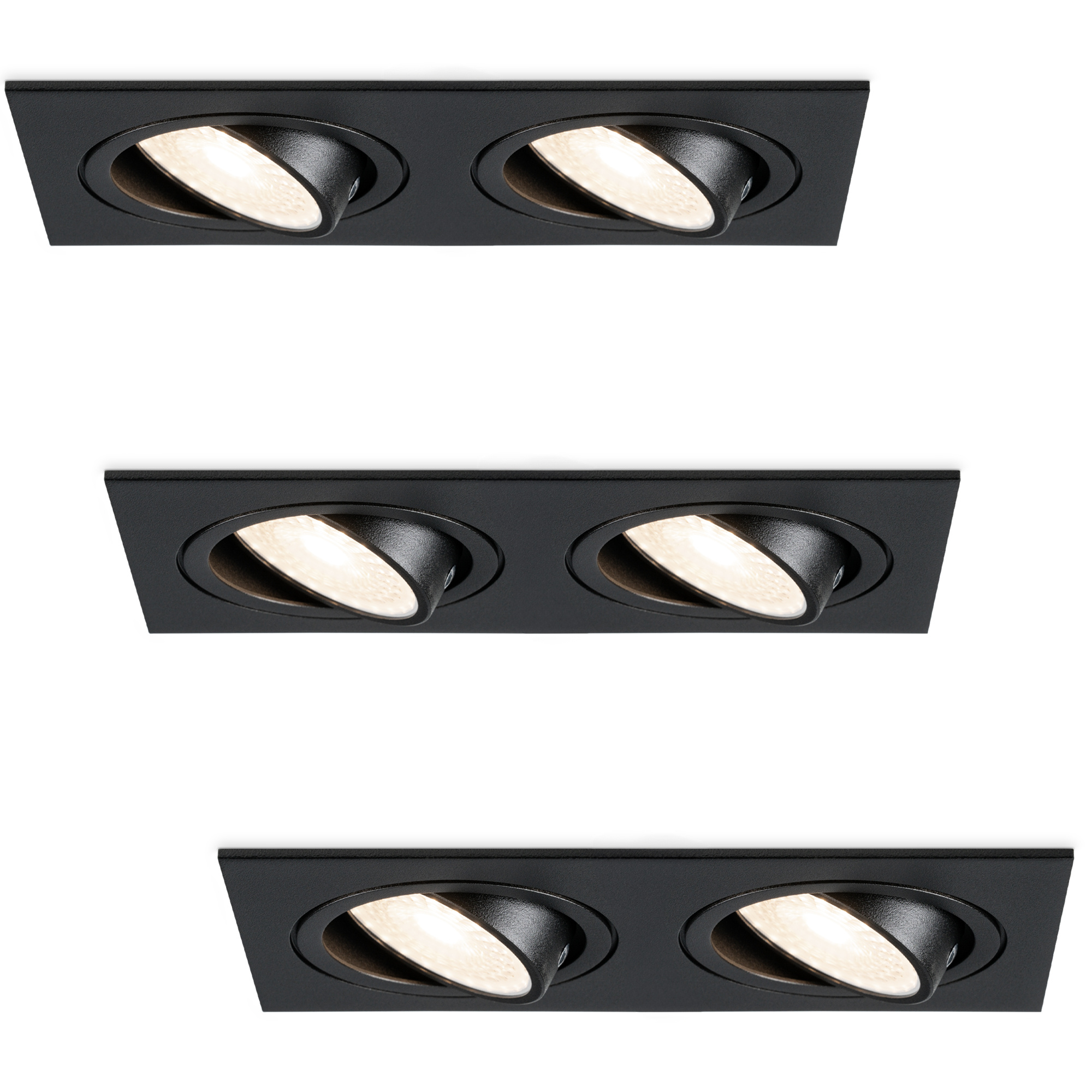 HOFTRONIC Set van 3 Mallorca dubbele LED inbouwspots vierkant – Kantelbaar – 4000K Neutraal wit – GU10 – 5 Watt – Rechthoekig – GU10 verwisselbare lichtbron – Plafondspot voor binnen – Zwart