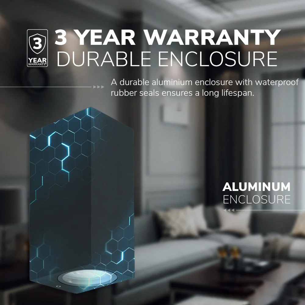 Onderhoudsvrij aluminium heeft een aantal voordelen. Uiteraard roest dit equipage niet, waardoor je de lamp gerust het hele jaar buiten kunt laten hangen. Daarnaast is dit materiaal zeer licht, hierdoor heb je minder grote schroeven nodig. Handig voor wanneer je de LED muurlampen bijvoorbeeld aan de schutting wilt hangen. Daarnaast is dit materiaal zeer volslagen te onderhouden, doordat rondvliegend vuil en stof zich slecht hecht aan dit type aluminium. Hierdoor heb je gegarandeerd nog jarenlang een prachtige LED wandlamp.