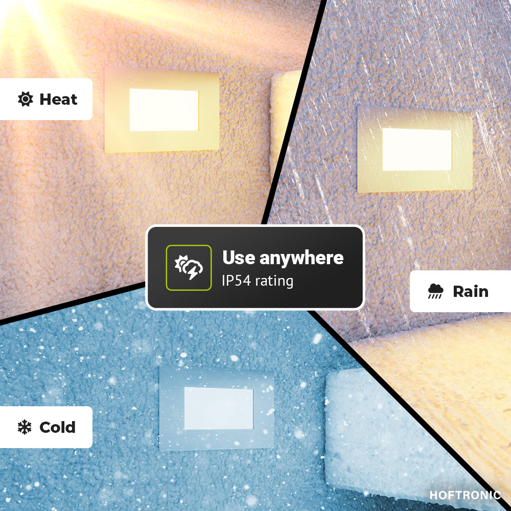 De Dillon inbouwspots zijn IP54 stof- en waterdicht. Dit betekent dat ze goed tegen stof en viezigheid kunnen en daarnaast genoeg waterdicht zijn om buiten te benuttigen. Ze kunnen goed tegen regen en sneeuw.