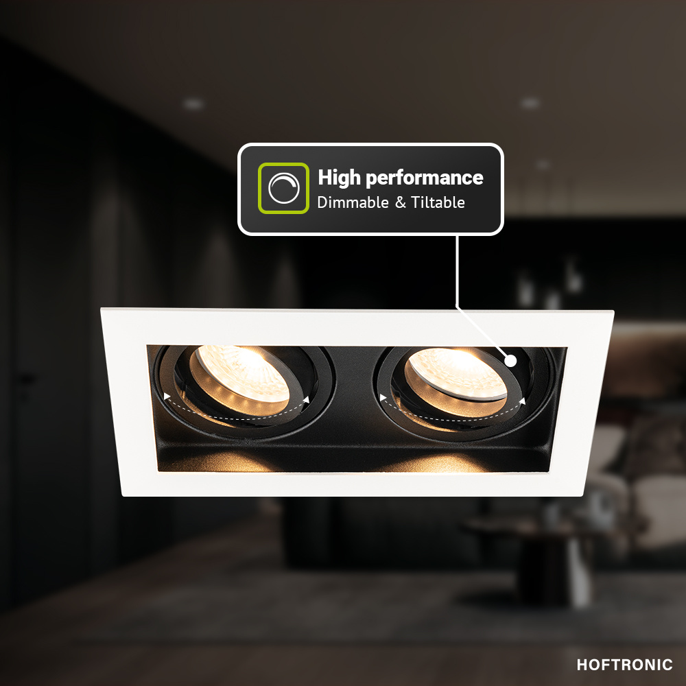 HOFTRONIC Set van 6 Durham Inbouwspots Dubbel Wit – GU10 5 Watt 400 lumen – 2700K warm wit – Kantelbaar – IP20 – Rechthoek