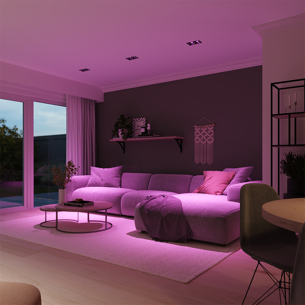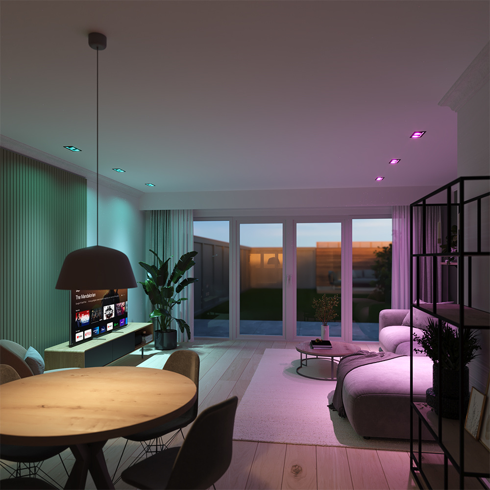 • Geofencing: Laat de spots reageren op fundament van jouw locatie. Verlaat je het huis? Dan schakelt je verlichting automatisch uit. Kom je weer thuis? Dan wordt je verwelkomd door jouw gewaardeerde lichtscene. (alleen leverbaar op IOS besturingssystemen)
