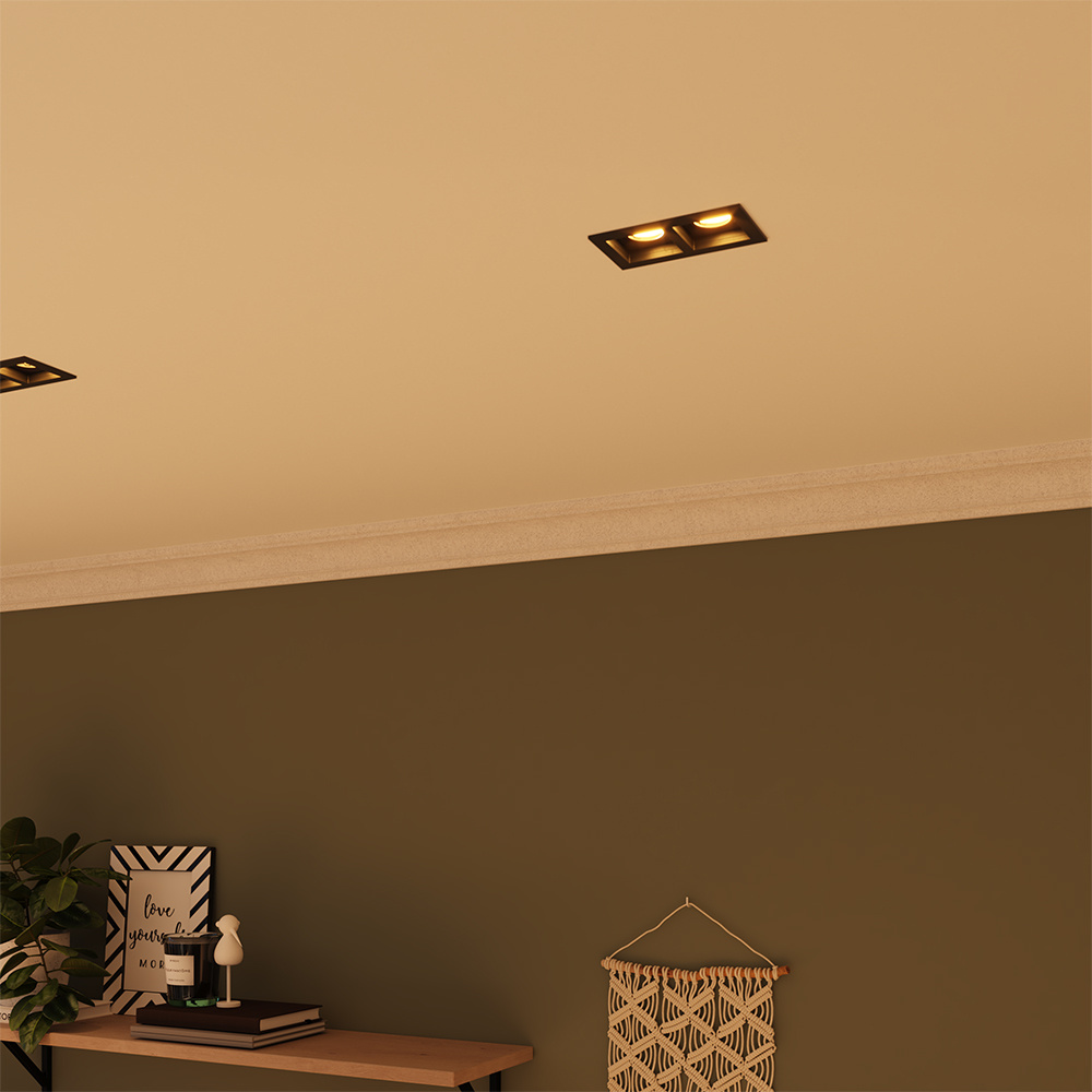 De Fresno Dubbel is goed als inbouwspot voor je plafondverlichting. Hij heeft handige GU10 fittingen waar je doodeenvoudig en eerdaags elke lichtkleur GU10 lichtbron in kunt draaien. Deze set bevat 2 lichtbronnen in 2700K warm wit licht. Het armatuur is gemaakt van grondig plastic dat niet verkleurd in zonlicht. De armatuur wordt standaard geleverd met GU10 fittingen en kabelconnectoren. De lamp kan regelrecht aan het 230V netwerk worden aangesloten. De Fresno heeft klemveren aan de zijkant van het armatuur waarmee je de lamp probleemloos in het plafond geplaatst.