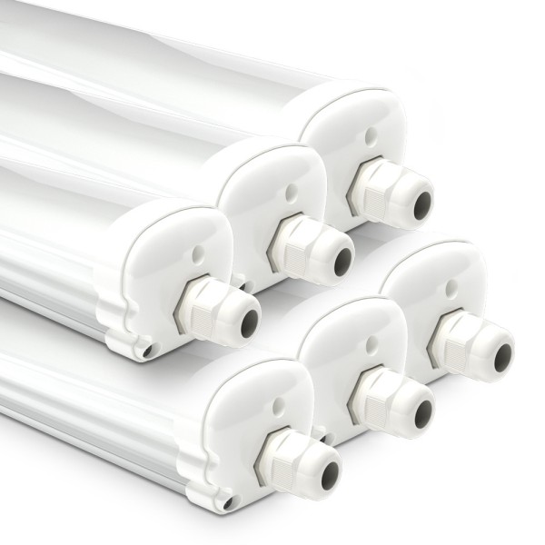 De lamp is simpel waterdicht te koppelen door de aangebrachte aansluitwartels. Hierdoor koppel je in een handomdraai verscheidene lampen aan elkaar, waardoor je meerdere lampen eveneens met één schakelaar kunt bedienen. Door de waterdichte aansluitwartels kun je de lampen waterdicht aan elkaar koppelen door middel van een reguliere kabel. Je kunt tot optimaal 10 LED TL armaturen aan elkaar koppelen.