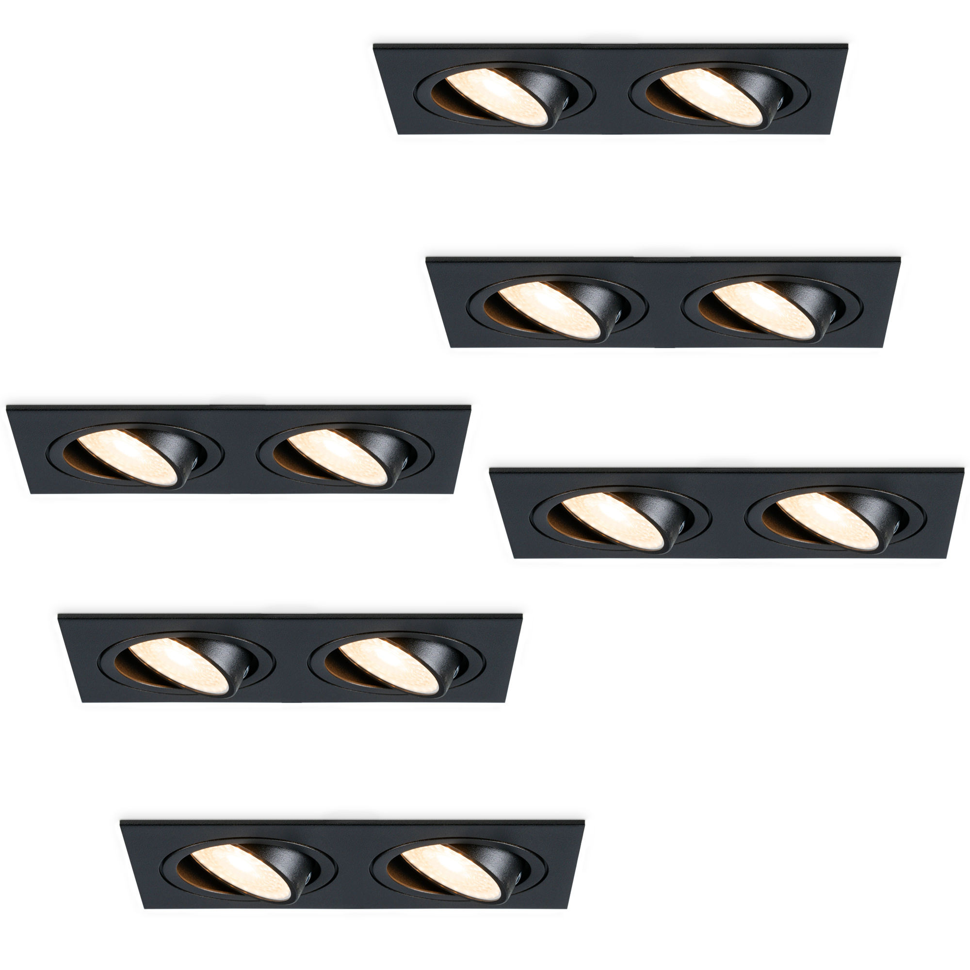 HOFTRONIC Set van 6 Mallorca dubbele LED inbouwspots vierkant – Kantelbaar – 2700K Warm wit – GU10 – 5 Watt – Rechthoekig – GU10 verwisselbare lichtbron – Plafondspot voor binnen – Zwart
