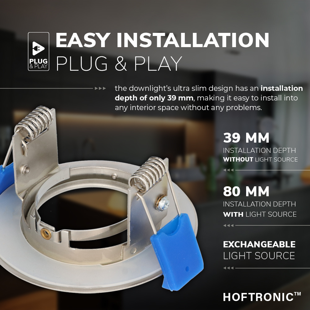 Dit Pisa inbouwarmatuur past door zijn lage inbouwdiepte van 39 millimeter comfortabel in ieder plafond. Door de handige GU10 fitting draai je eenvoudig en snel elke lichtkleur GU10 lamp in je inbouwspot. Het armatuur is gemaakt van een stevig onderhoudsvrij aluminium. De armaturen zijn goed voor vochtige vertrekken zoals je keuken, badkamer of woonkamer.