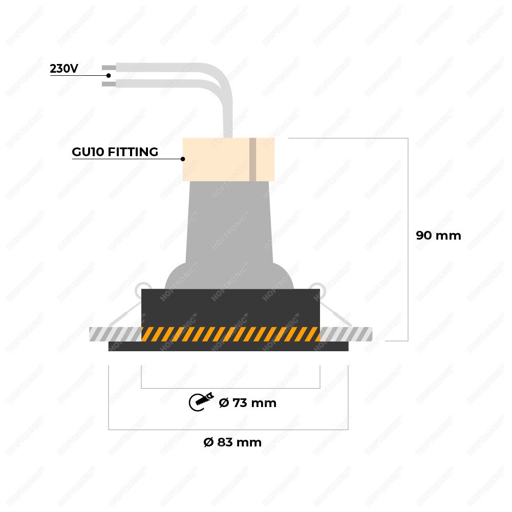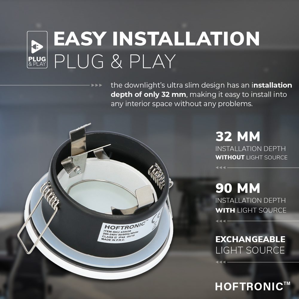 Deze Barcelona LED inbouwspot set is vochtbestendige IP44 waarmee deze spot uitstekend is om in te bouwen in jouw badkamer. Een groot winst van deze LED spot is dat de GU10 spot welke in het armatuur zit vervangen kan worden. Het bestellen van een geheel kersverse LED inbouw spot is dus niet nodig wanneer de spot defect gaat. Je kunt aangenaam de GU10 spot uit het armatuur halen en verwisselen voor een andere GU10 spot. Het aansluiten van de LED spot is heel eenvoudig door de meegeleverde kroonsteenaansluiting (wago klemmen) waarmee je de spot op het lichtnet van 230 Volt aansluit.