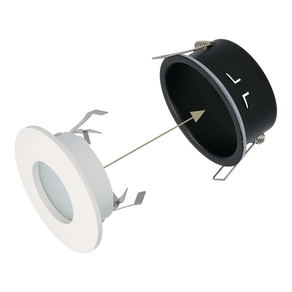 Deze LED inbouw spot word installeer klaar overgedragen, dit betekent dat een spot bestaat uit het vochtbestendige IP44 armatuur inclusief de klemveren en melk kleurige glaasje, een dimbare 5W GU10 LED spot, een GU10 fitting en 2 kroonsteenaansluitingen (wago klemmen).