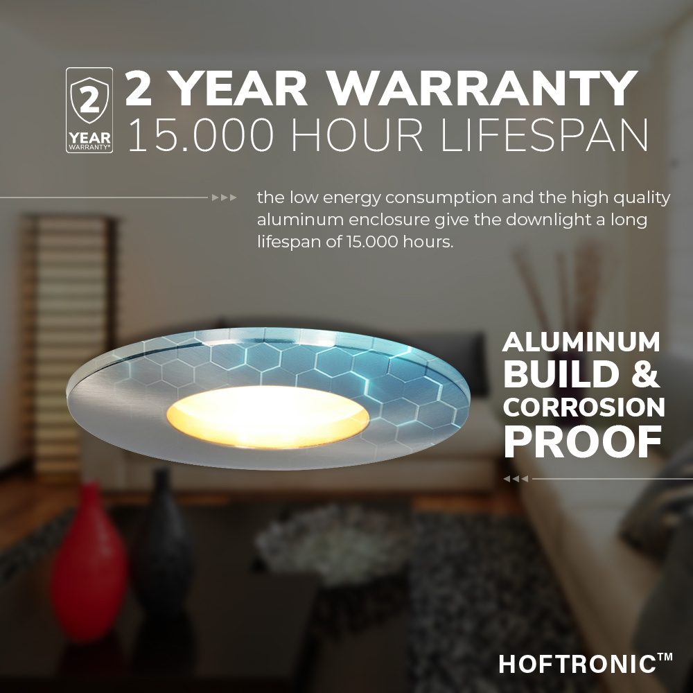 Deze Vegas LED inbouwspot set is vochtbestendige IP44 waarmee deze spot ideaal is om in te bouwen in jouw badkamer. Een groot voordeel van deze LED spot is dat de GU10 spot welke in het armatuur zit vervangen kan worden. Het aanschaffen van een totaal fonkelnieuwe LED inbouw spot is dus niet nodig wanneer de spot defect gaat. Je kunt moeiteloos de GU10 spot uit het armatuur halen en verwisselen voor een andere GU10 spot. Het aansluiten van de LED spot is heel eenvoudig door de meegeleverde kroonsteenaansluiting (wago klemmen) waarmee je de spot op het lichtnet van 230 Volt aansluit.