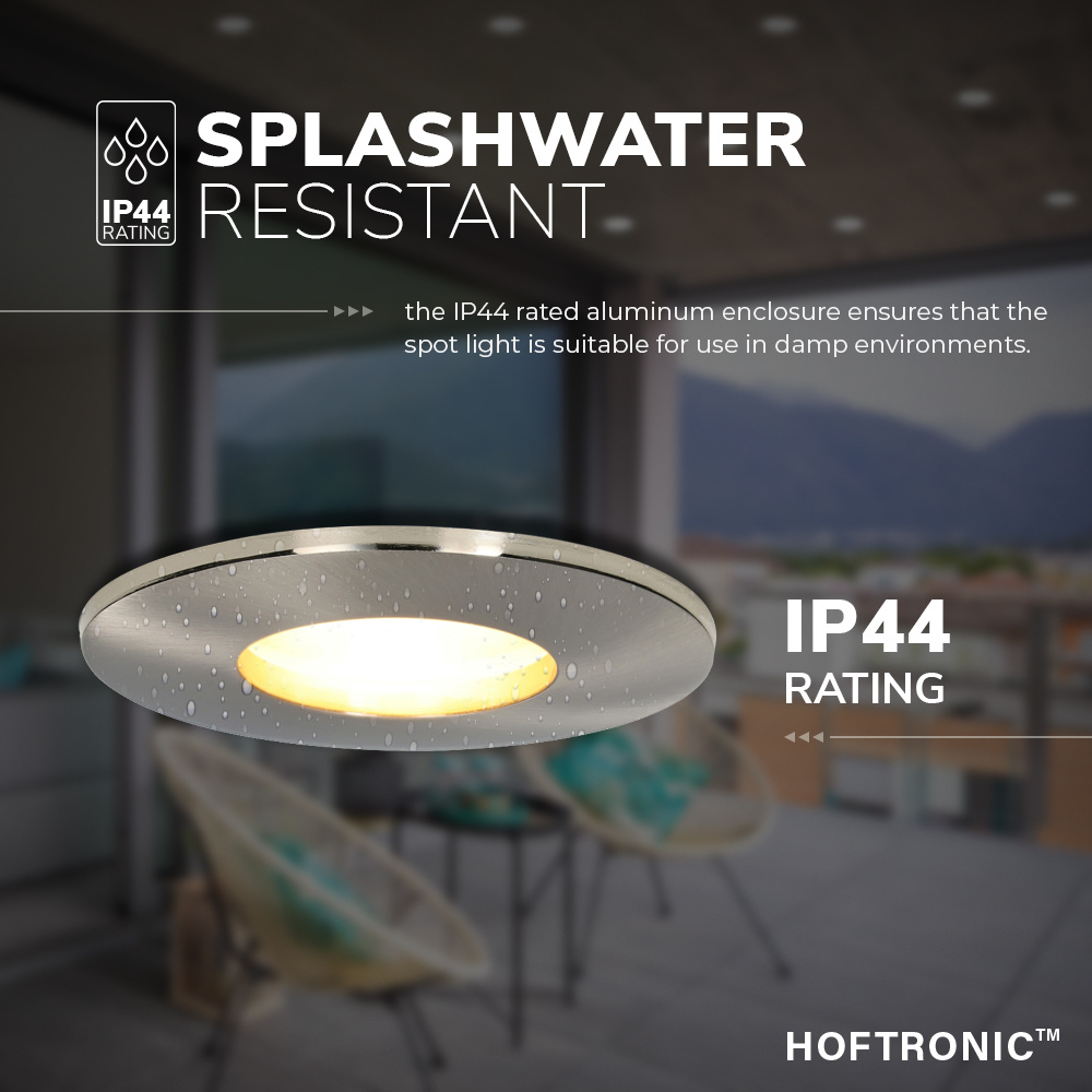 De inbouwspots zijn voorzien van een IP44 waterbestendige certificering. Hierdoor weet je beschermd dat je deze armaturen ook in vochtige ruimtes kunt utliseren zoals de badkamer, keuken of je woonkamer.